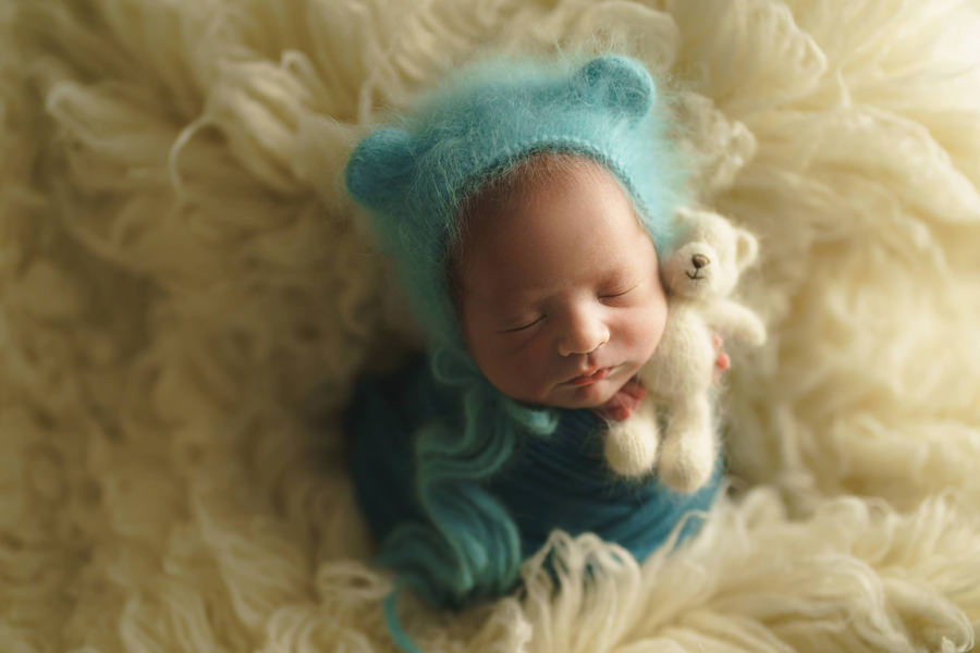 スウェーデンカラーのニューボーンフォト