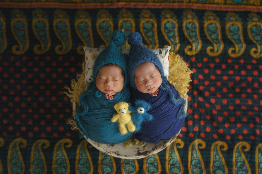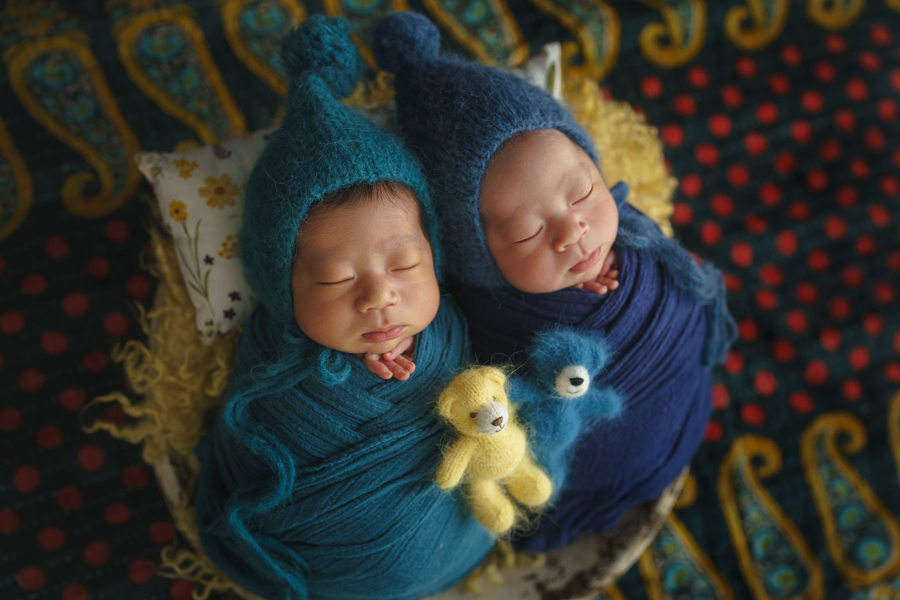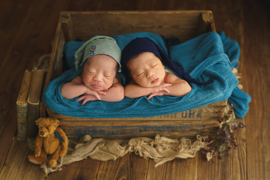 三年前、お姉ちゃんのニューボーンフォトに引き続き、今回は二人目、三人目と、双子ちゃんでの撮影をいただきました。